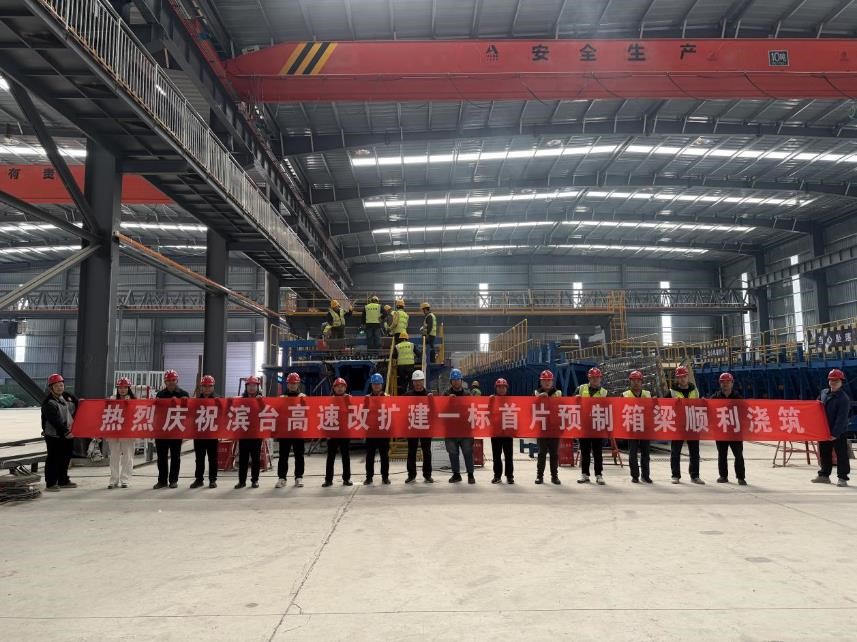 當前位置:網(wǎng)站首頁>>工程建設| 智慧梁場順利完成濱臺高速改擴建一標 首片預制箱梁澆筑工作 |