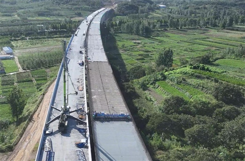董梁高速一標(biāo)項(xiàng)目部通過高效運(yùn)作智慧梁場(chǎng)、靈活運(yùn)用創(chuàng)新技術(shù)等方式,施工質(zhì)量和效率大幅提升,安全和環(huán)保同步推進(jìn)。截至目前,樁基工程完成比例達(dá)100%;梁板預(yù)制完成97%;橋面鋪裝工作完成52%;路面底基層施工完成31%、基層施工完成25%,柔性基層已順利完成首件施工。